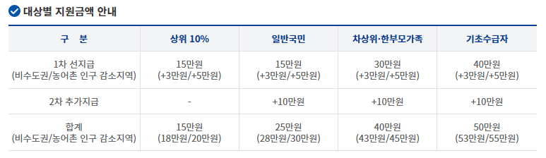 - 오프라인: 주민센터, 은행지점, ‘찾아가는 신청’ 서비스